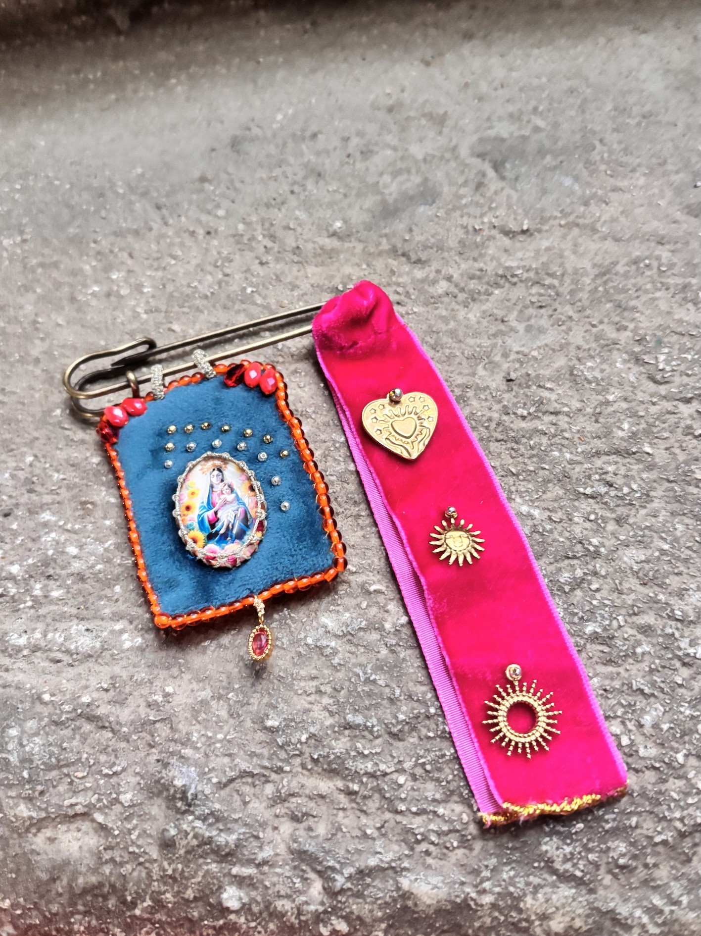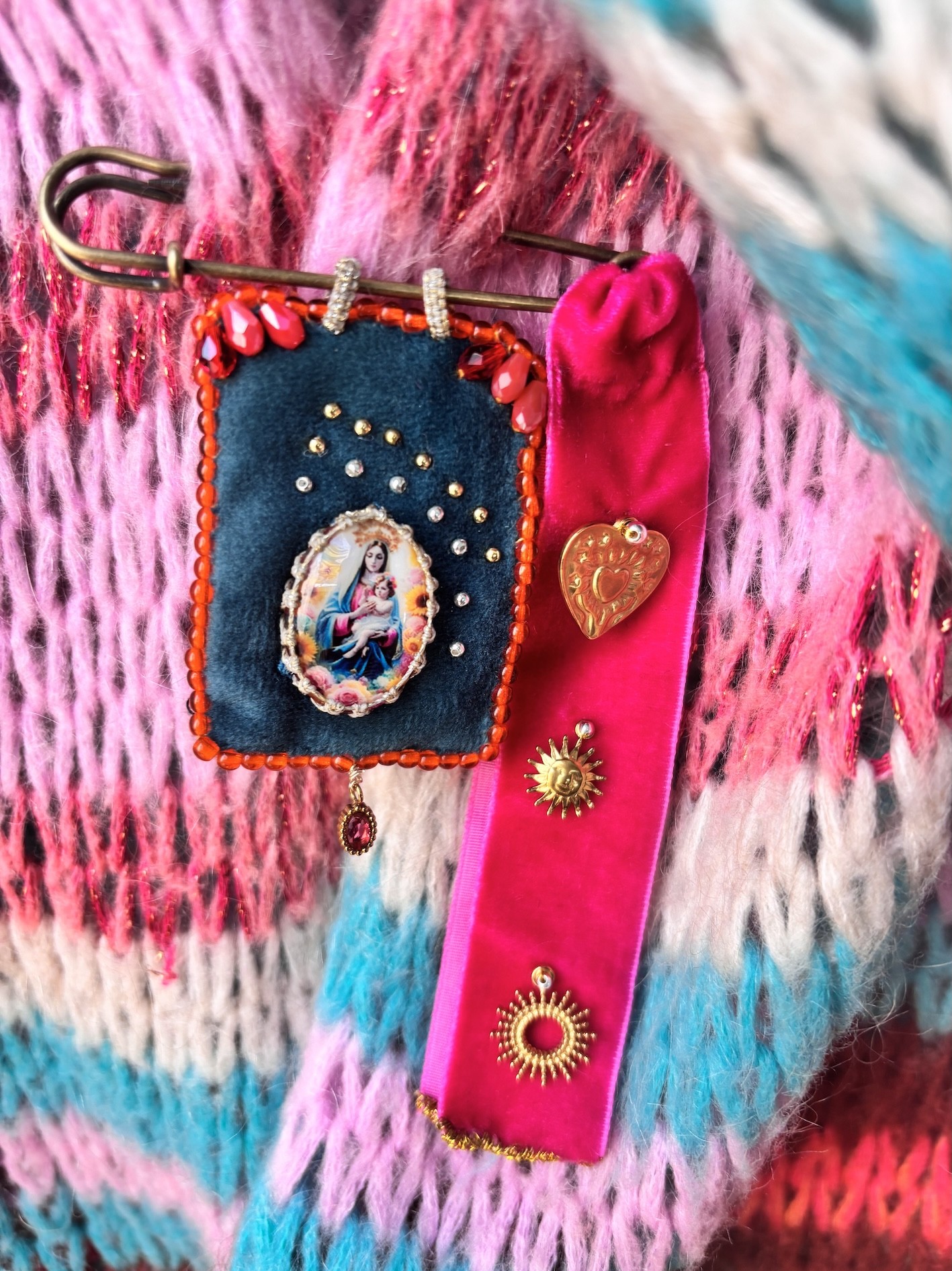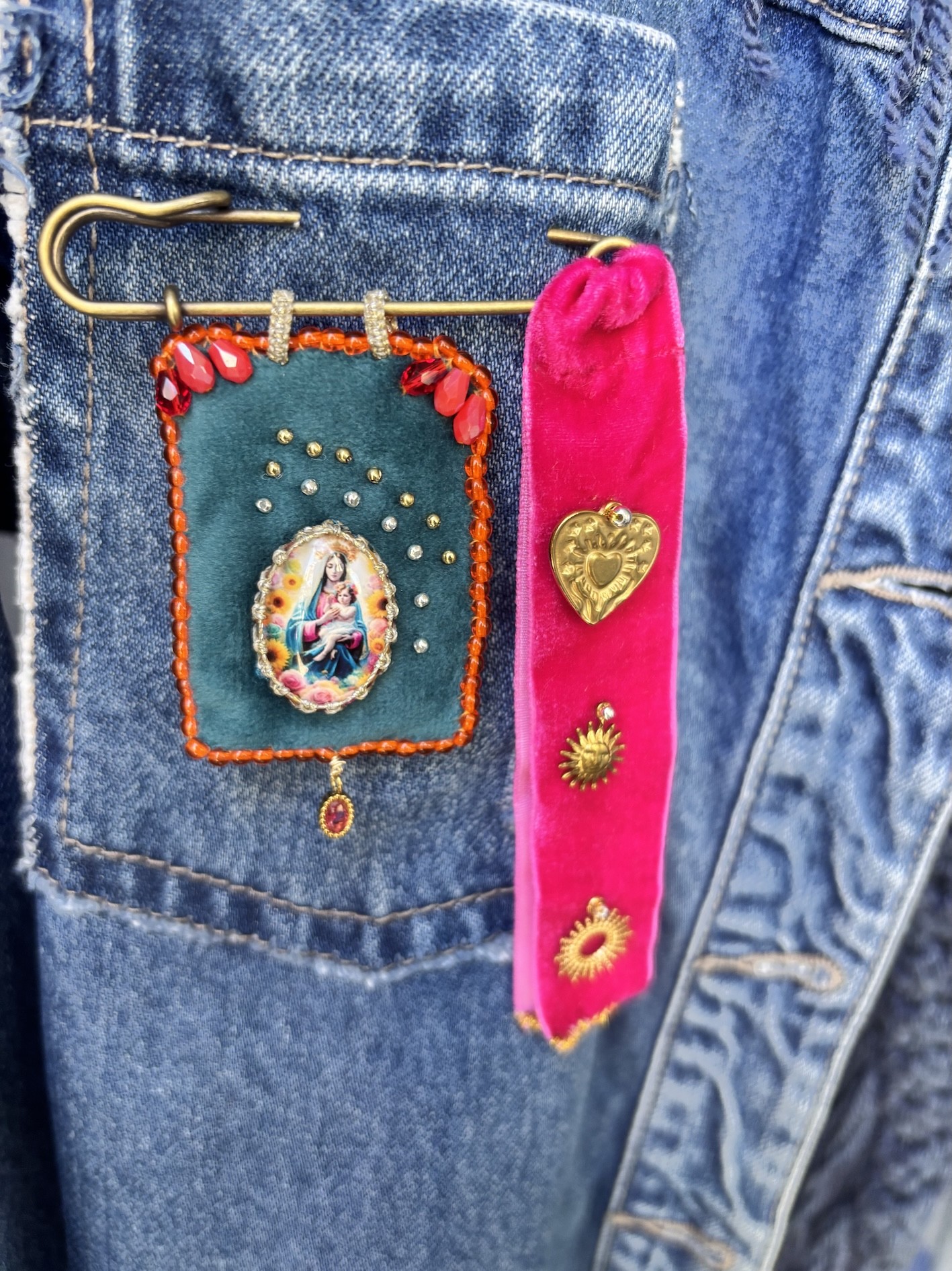 âš Cosca Pin’s Up présente : Barock n’Love, une broche bijou aussi sacrée que stylée, qui mêle ferveur, couleur et couture main. Une pièce unique pensée comme un talisman d’apparat à épingler partout.
