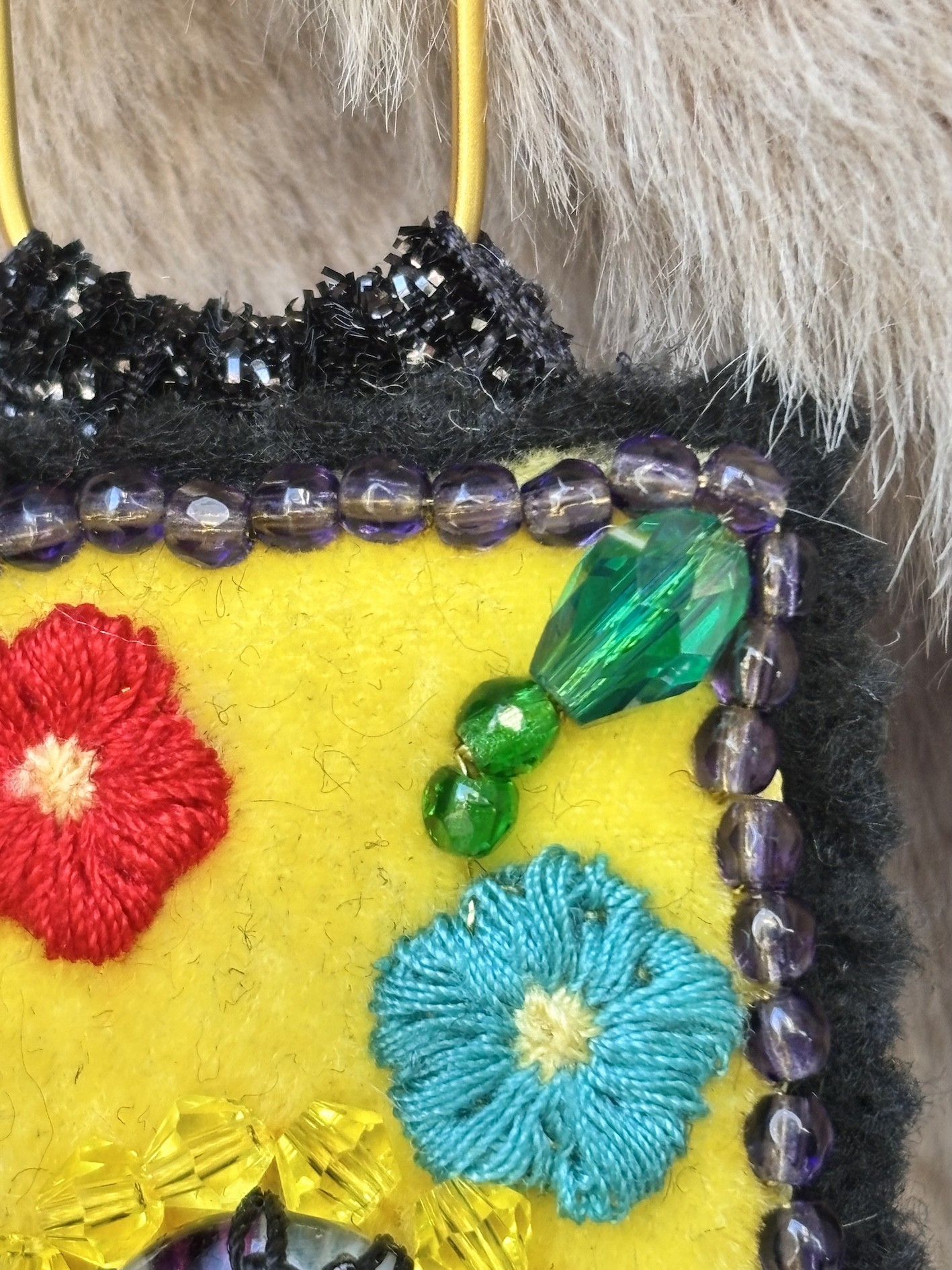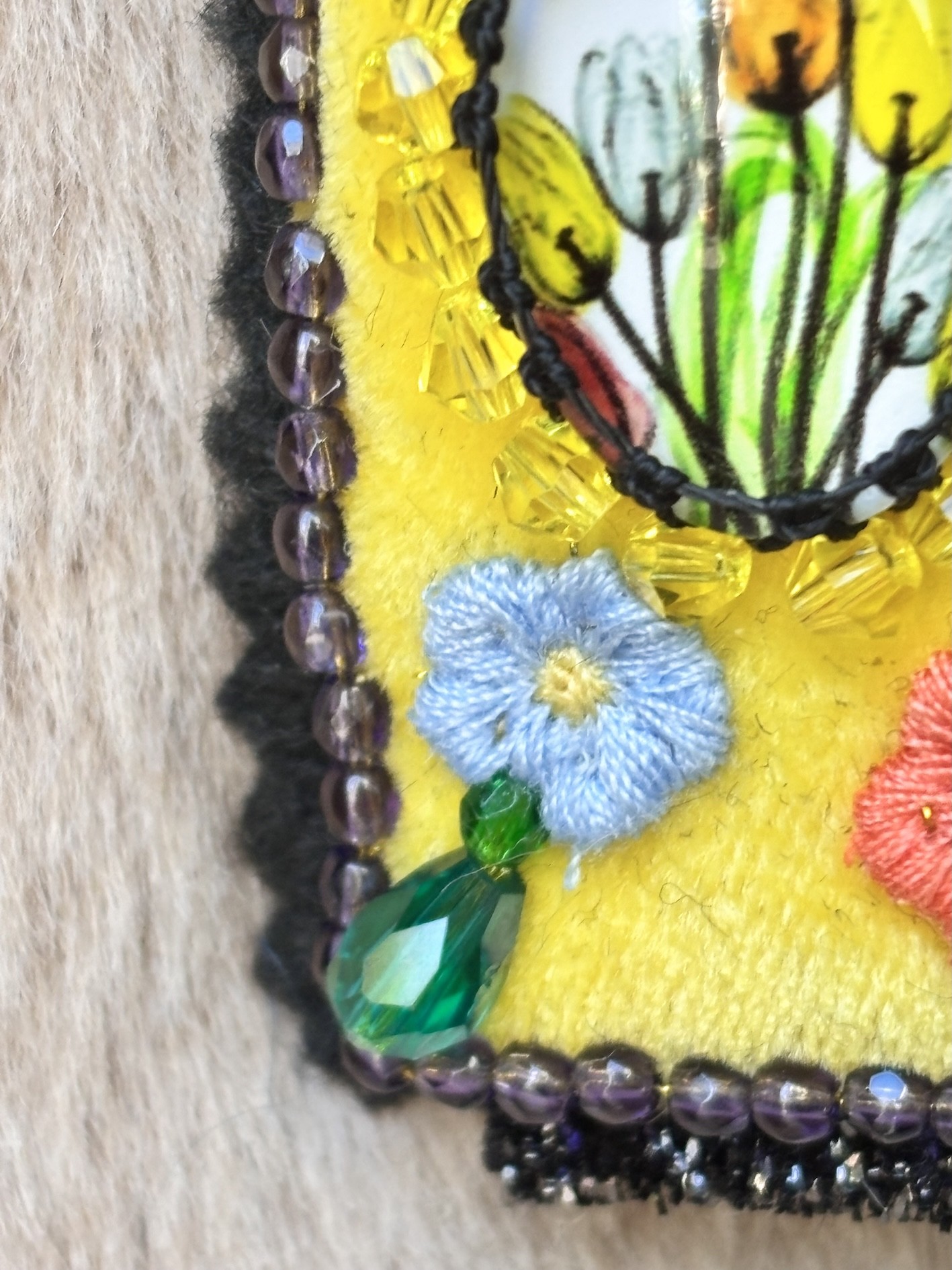 đ Et une pluie de perles tchèques facettées (jaune citron, vert émeraude, noir profond), pour faire pétiller le tout.