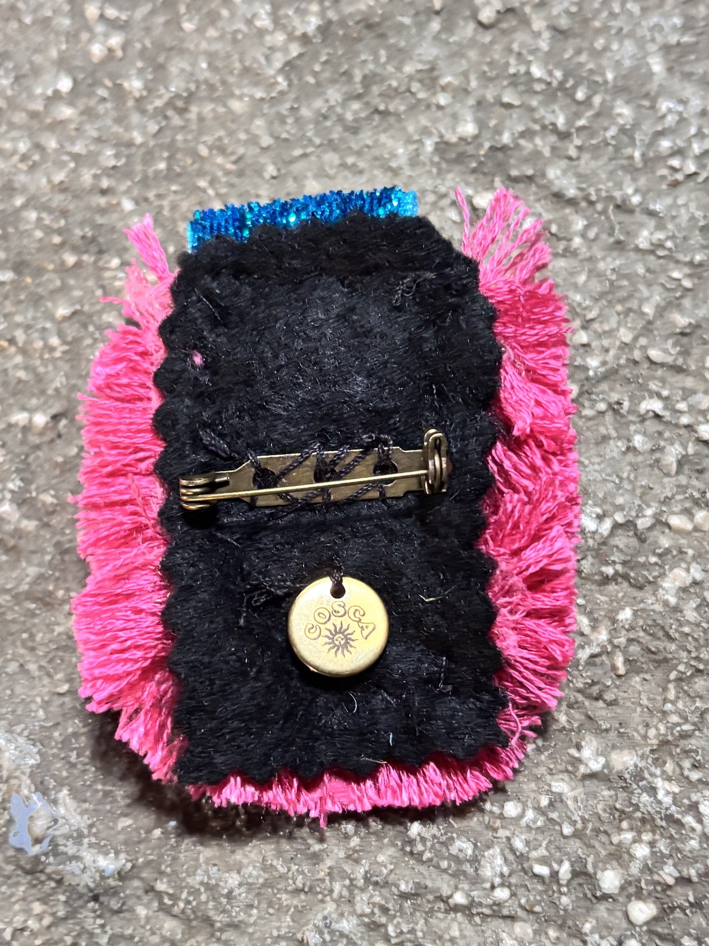 •Épingle cousue main au dos pour port en broche classique