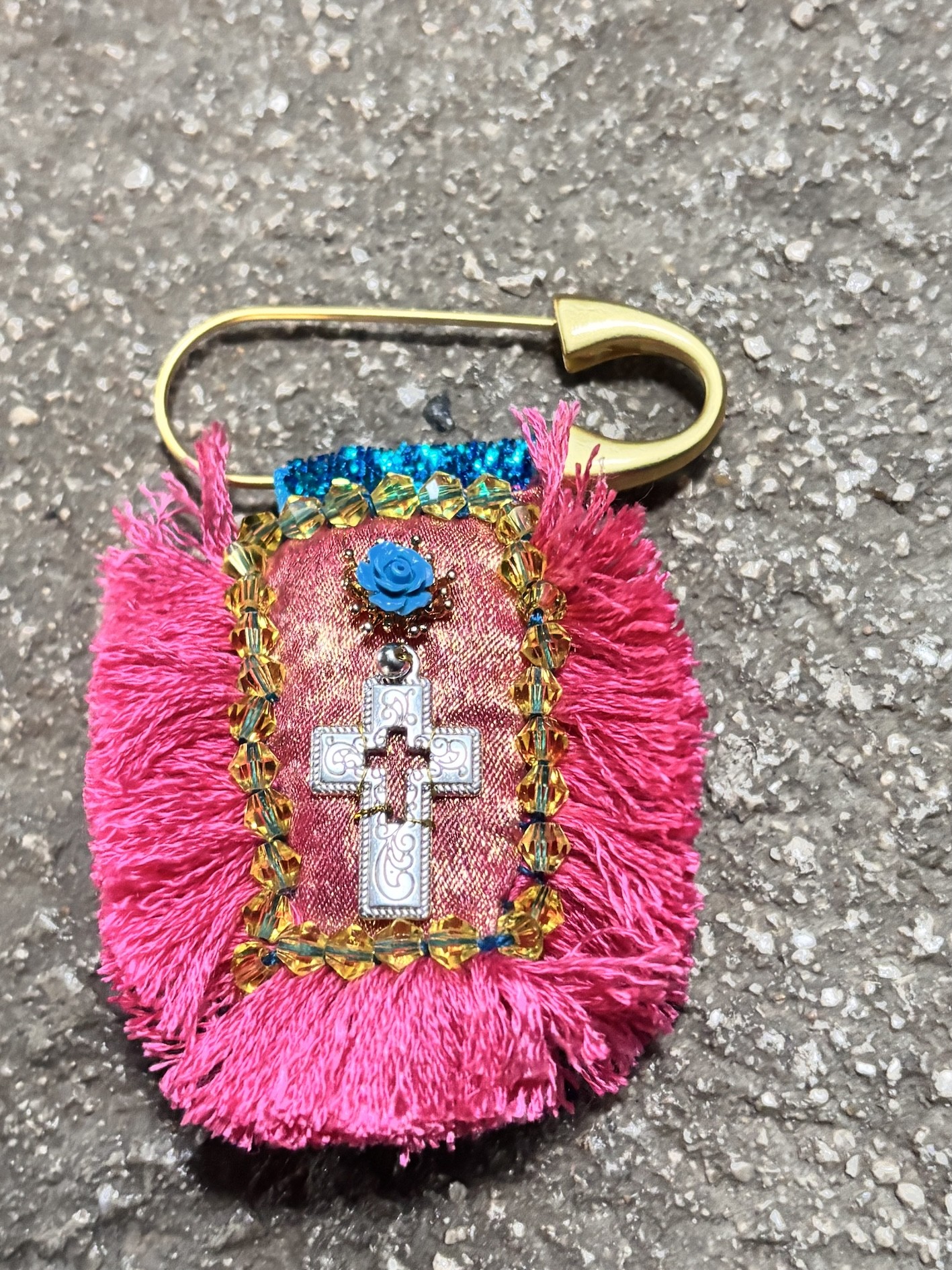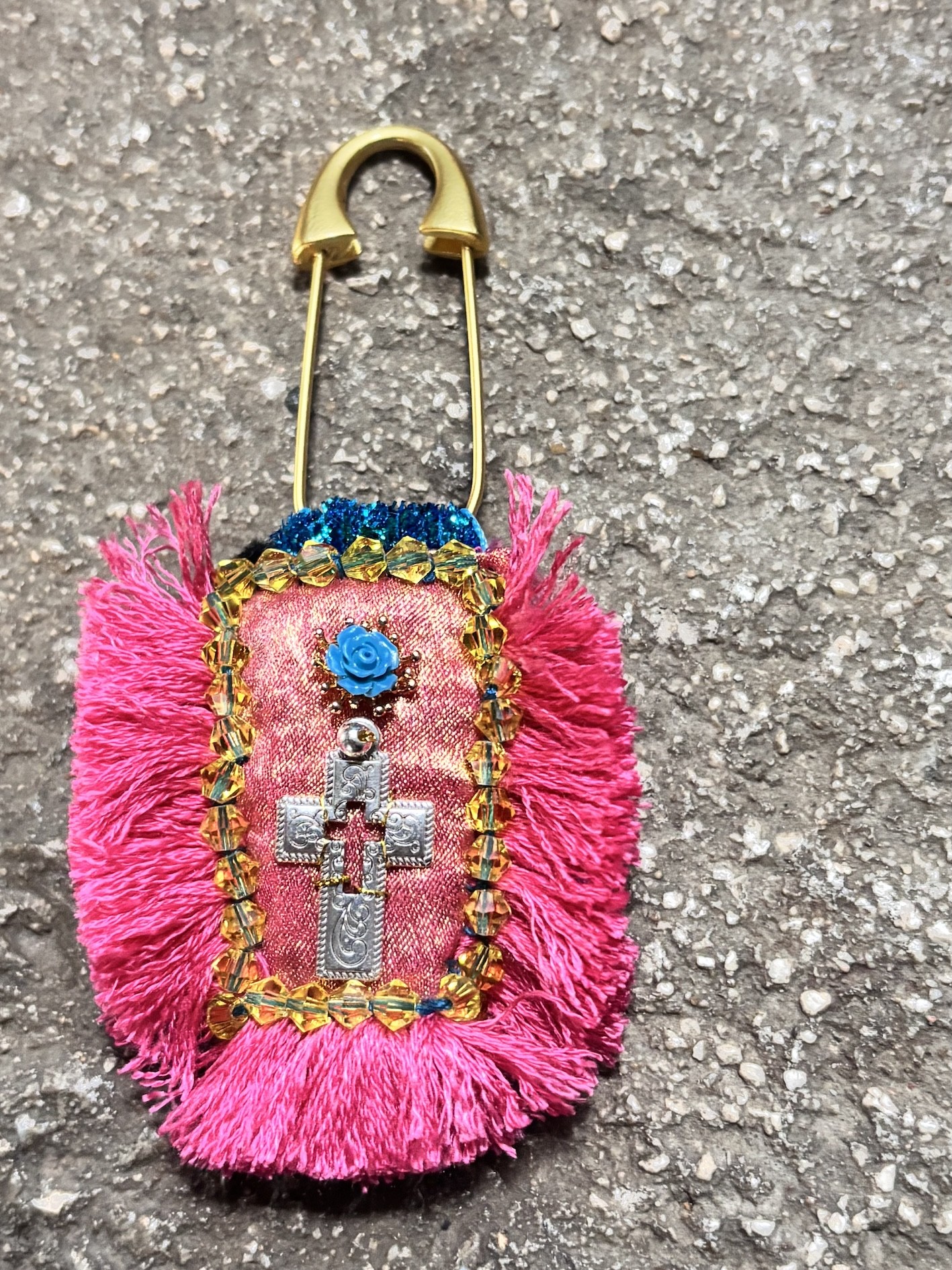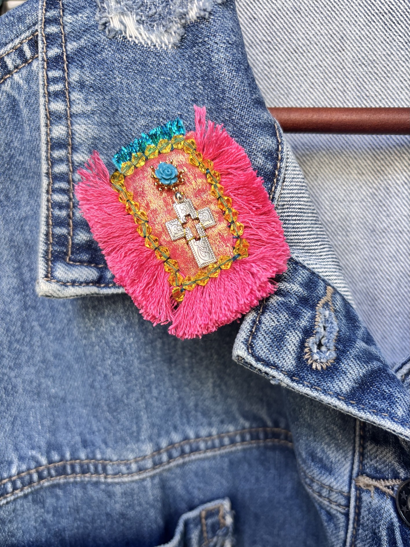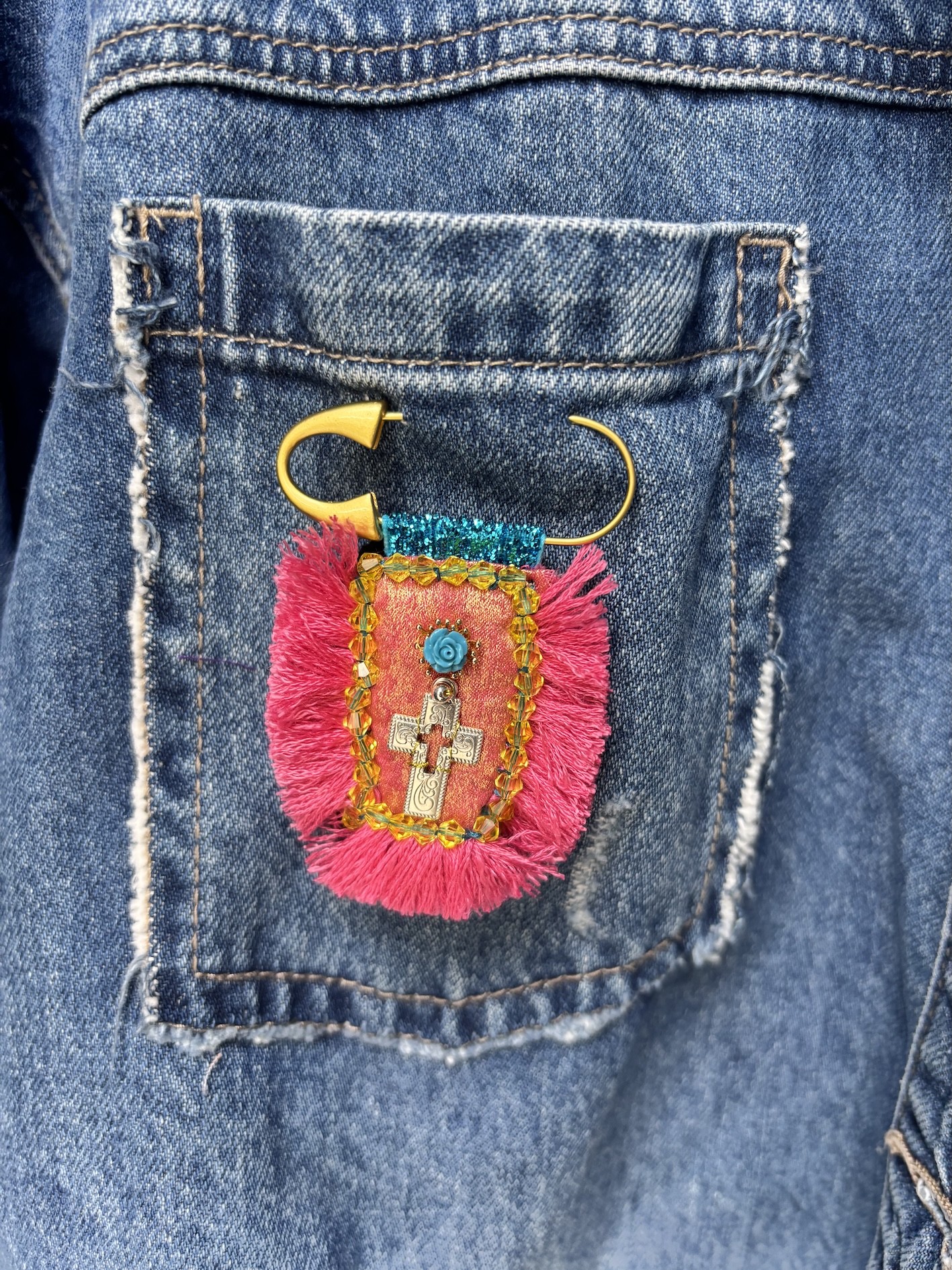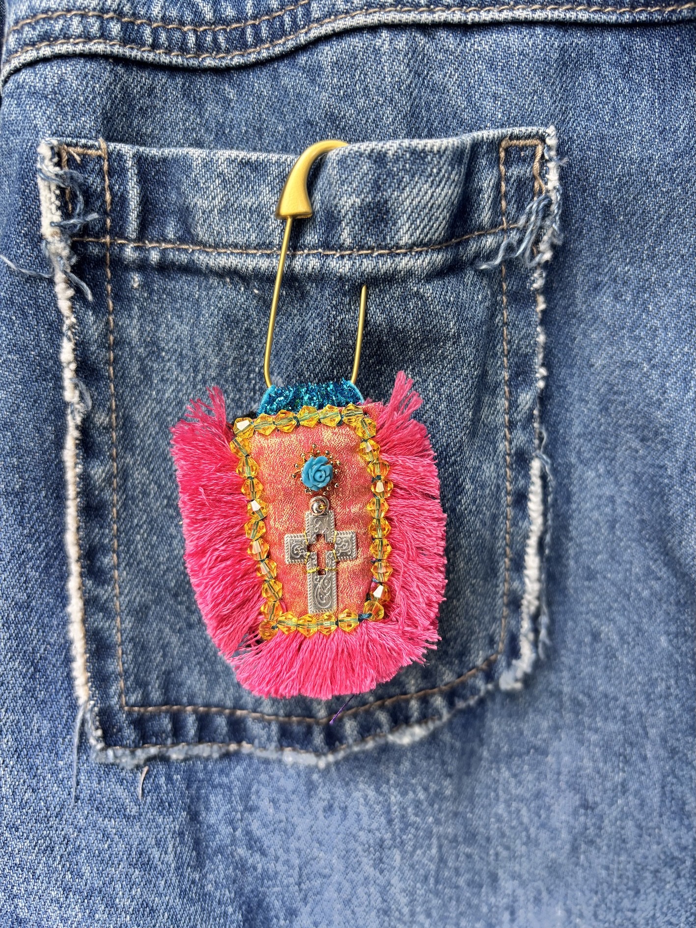 À accrocher sur un manteau, un sac, une veste en jean… ou à suspendre à une épingle façon talisman sacré.