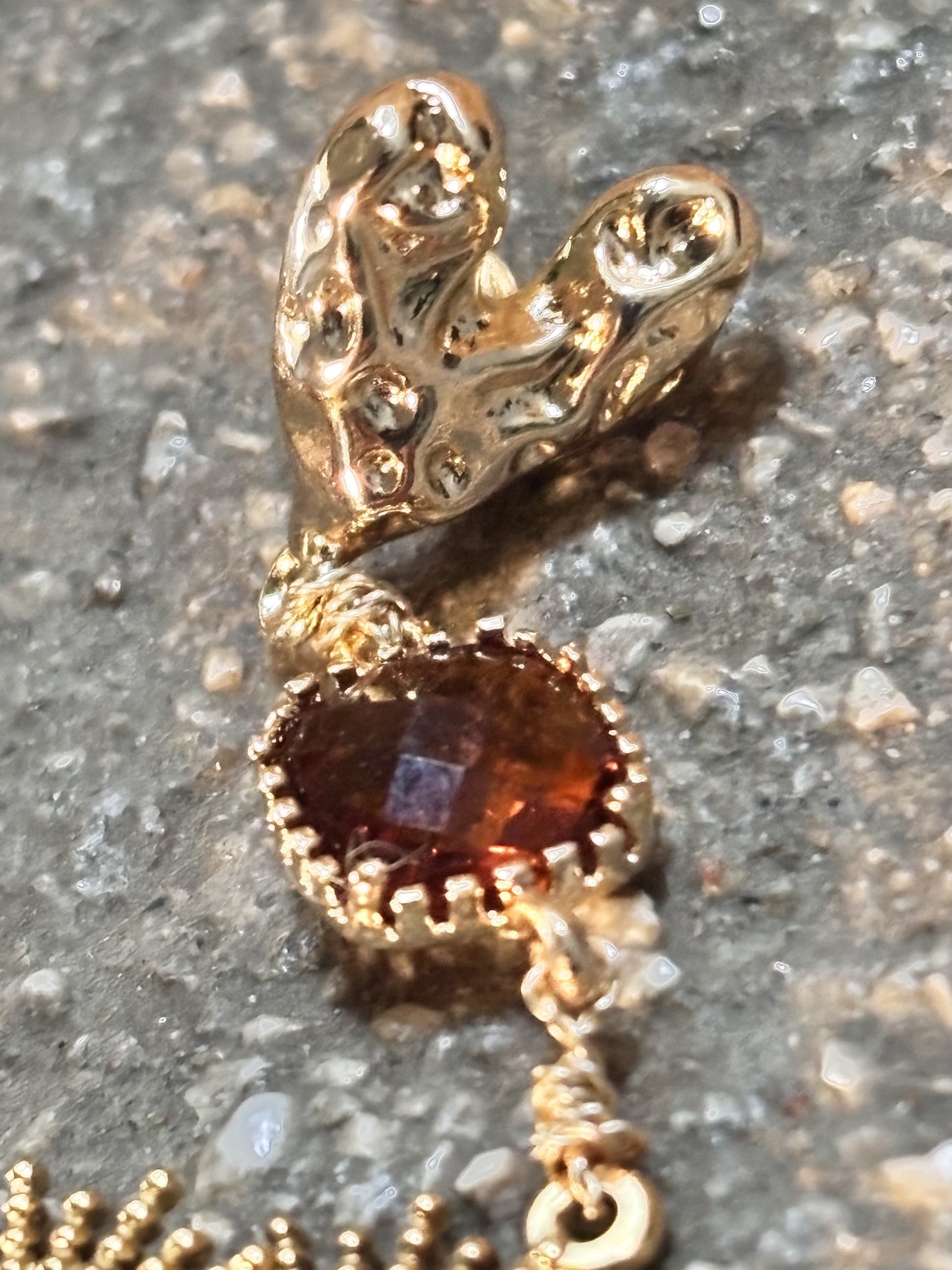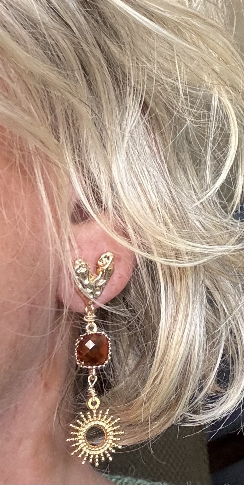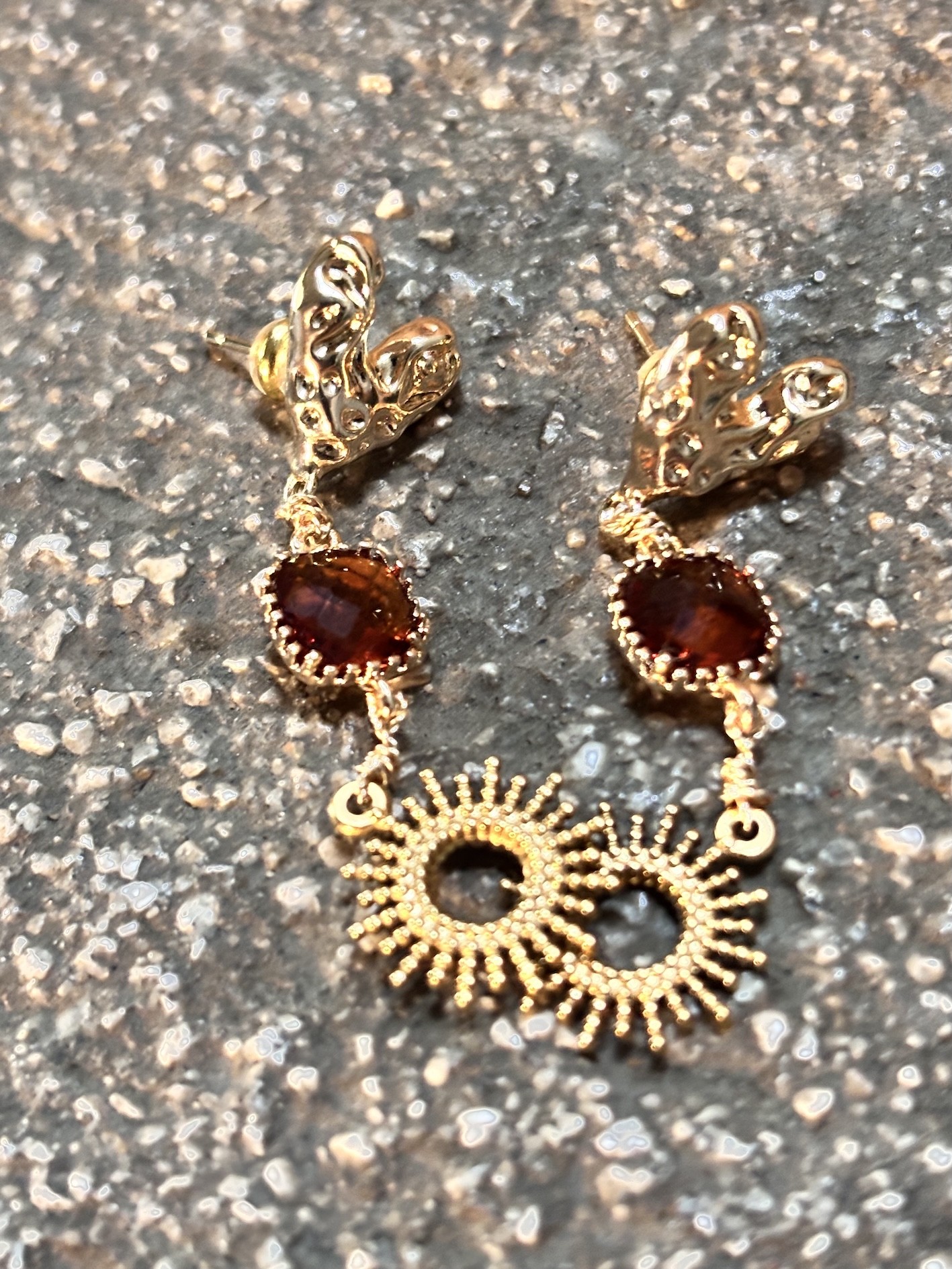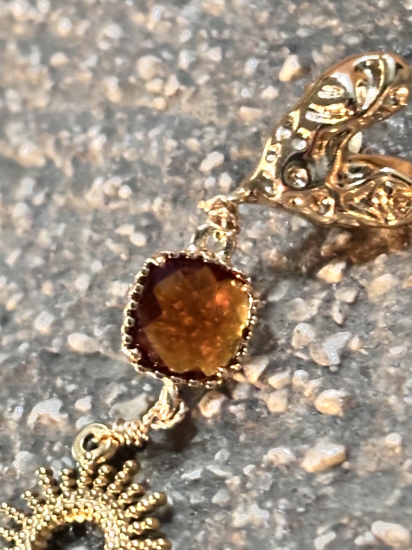 🔥 Pampille en cristal caramel brûlé, taillé façon gemme ✨ monture plaqué or 18k, pour une brillance chaude et hypnotique.