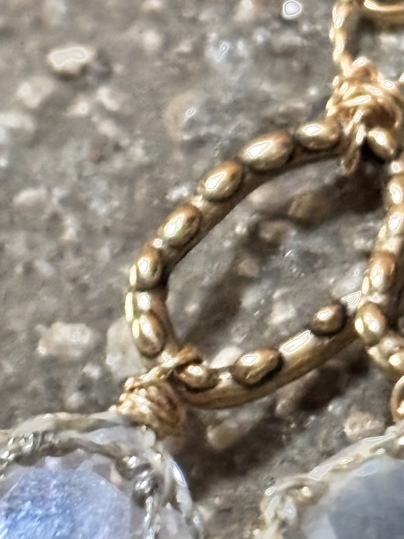 Chaque pierre est tressée à la main avec un fil brésilien or et argent (0,35 mm), pour un serti délicat et aérien.