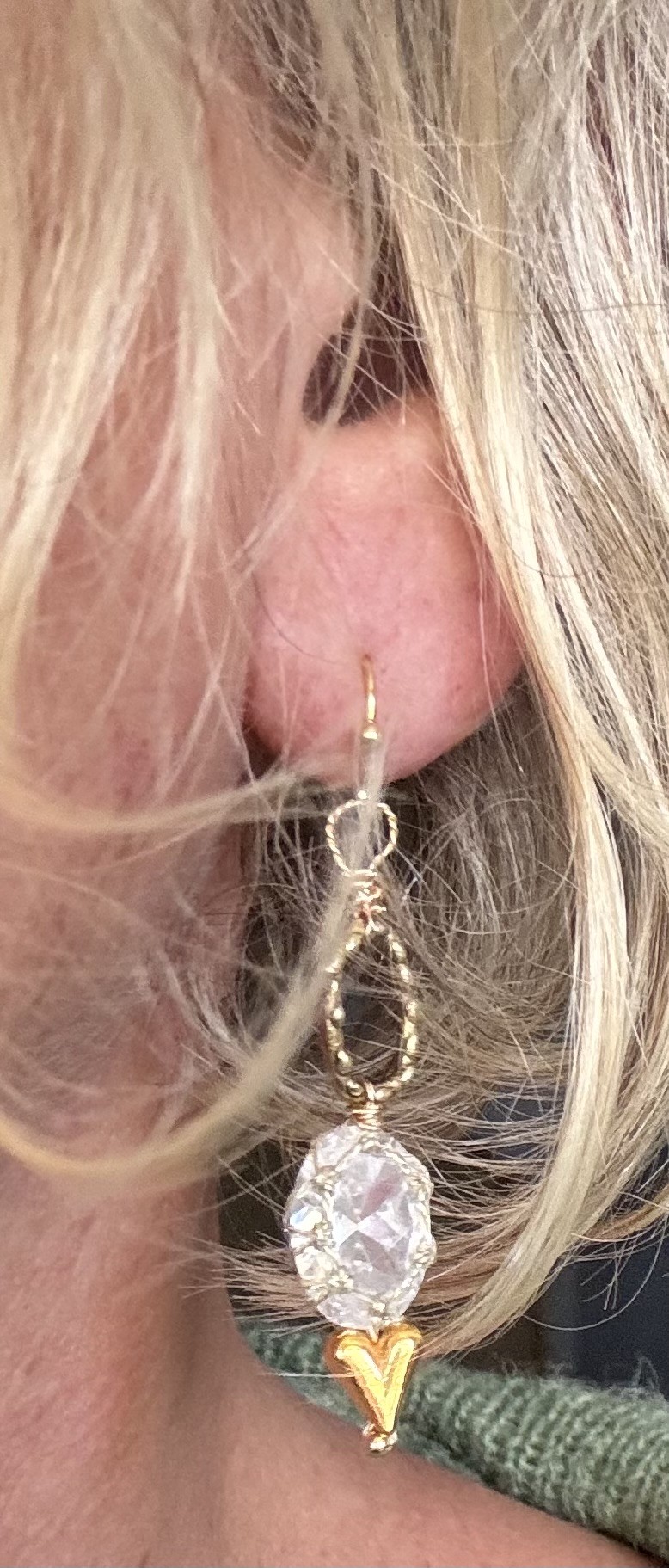 La création se termine sur une pampille cœur en acier inoxydable, signature tendre et dorée 💛