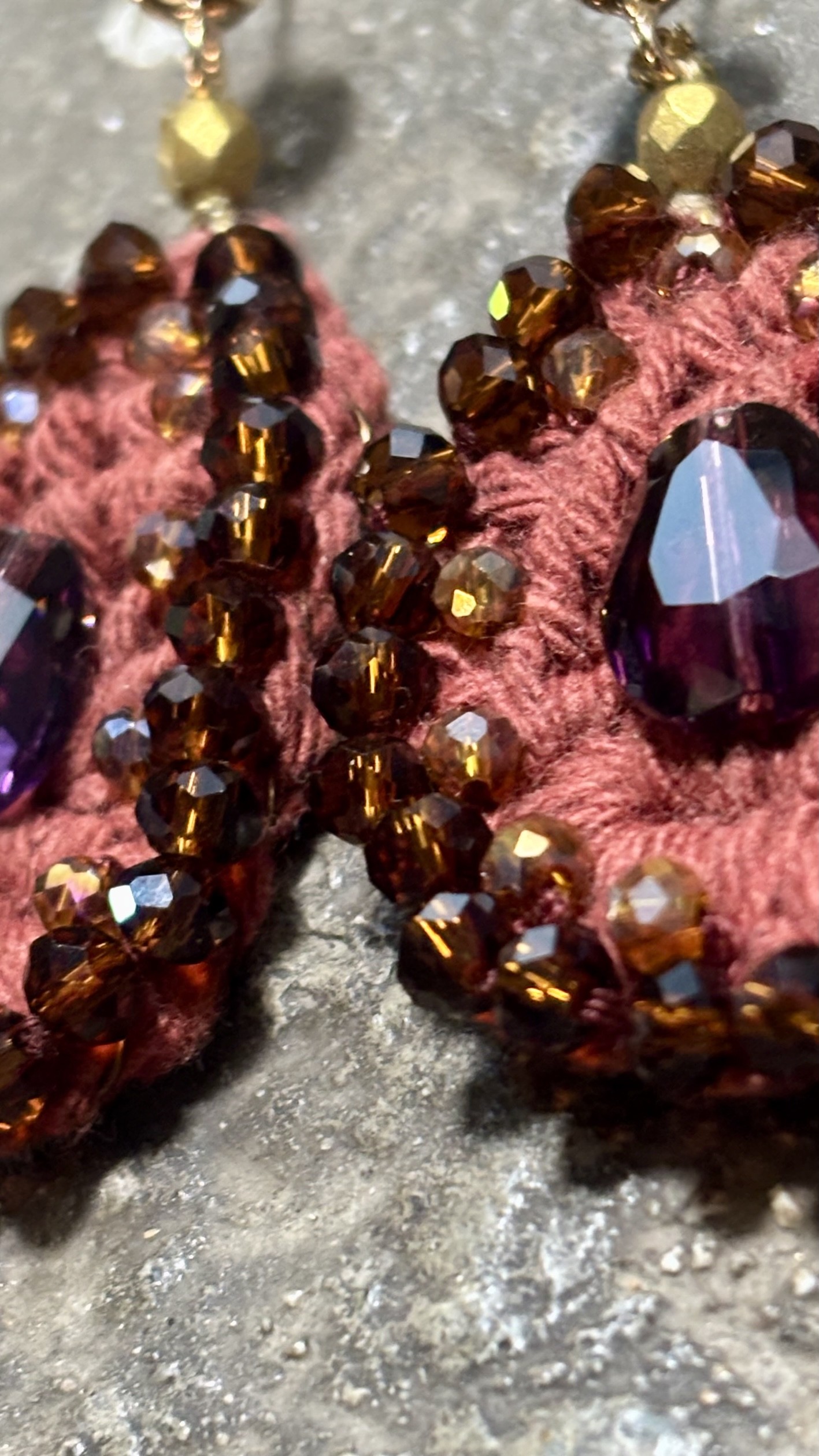 đž Pourtour en perles tchèques facettées cognac brûlé