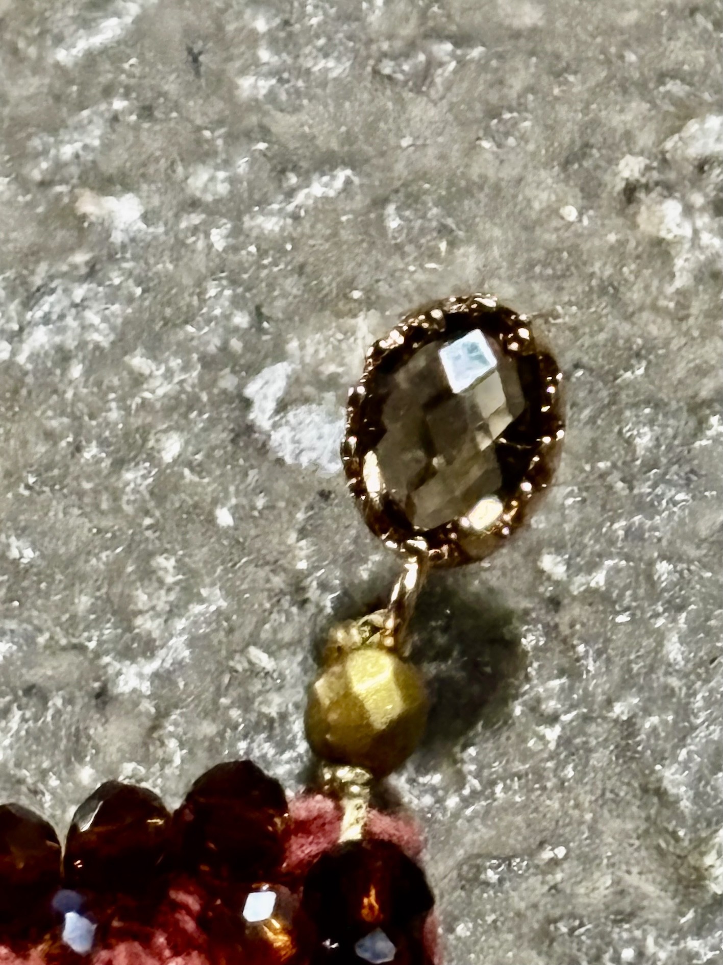 đž Fermoir clou en cristal smoky monté sur structure plaqué or 18k