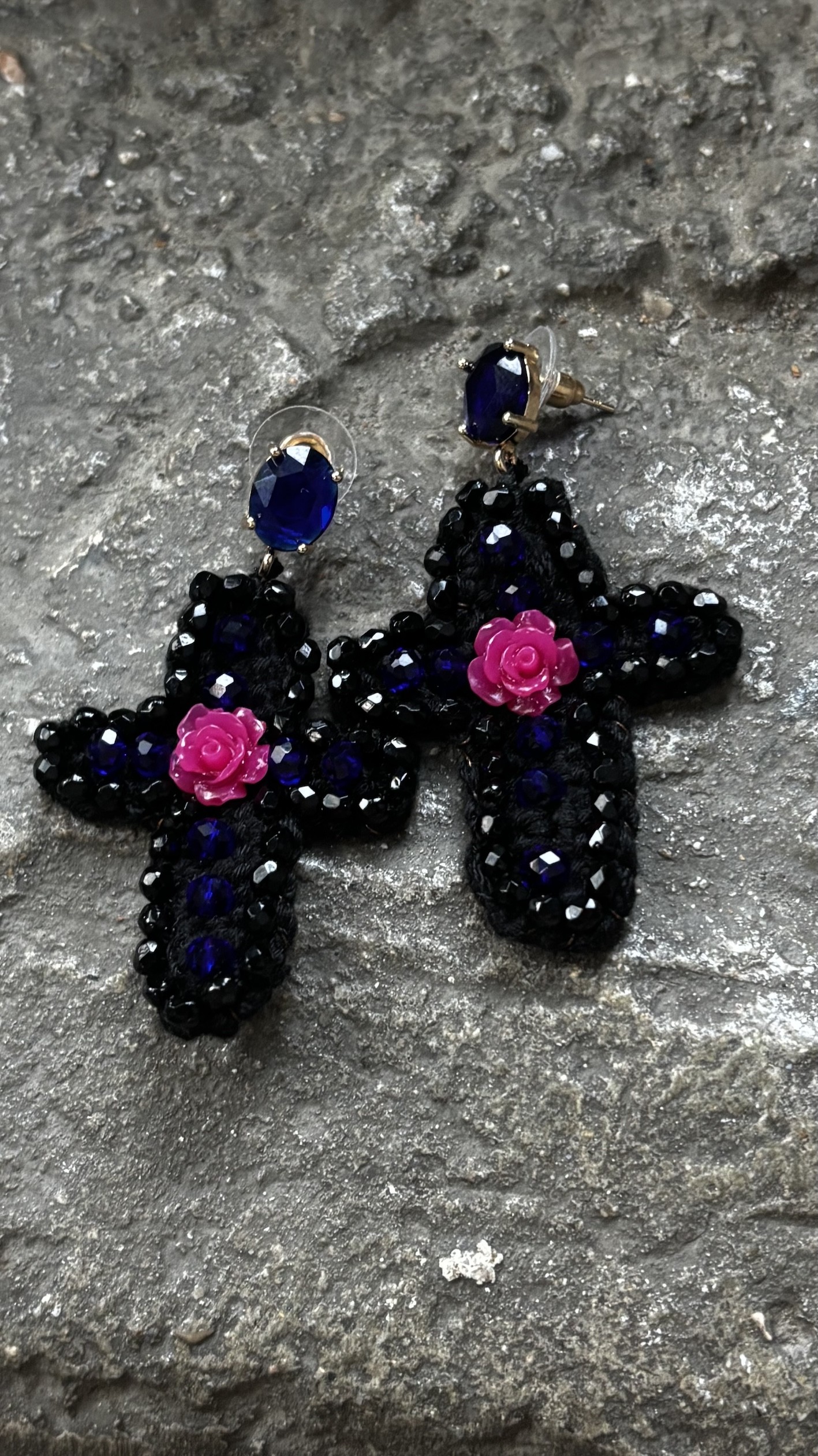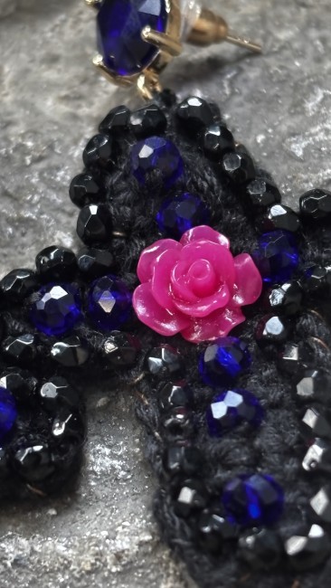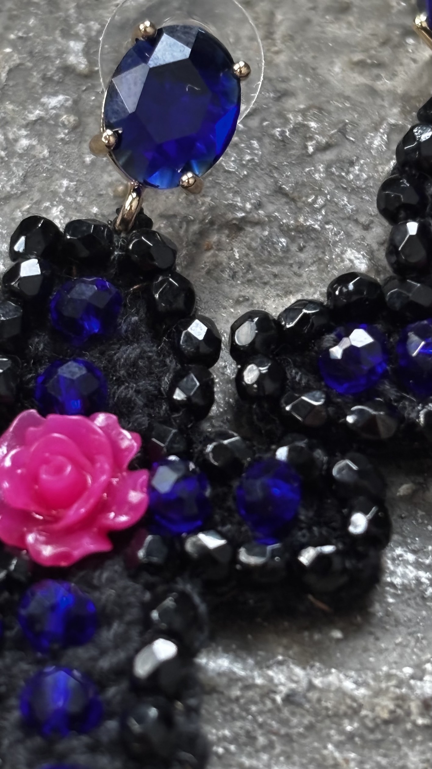 Les Pink Halo Boom mêlent un crochet noir fait main à un halo vibrant de perles tchèques facettées indigo et noires, pour un relief lumineux absolument spectaculaire. Au centre, un camélia fuchsia éclate comme un punch visuel – la signature Boom qui fait toute la différence đžâĄïž