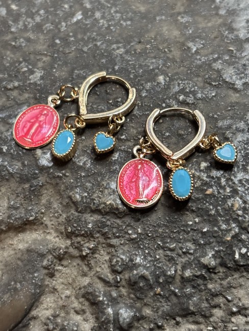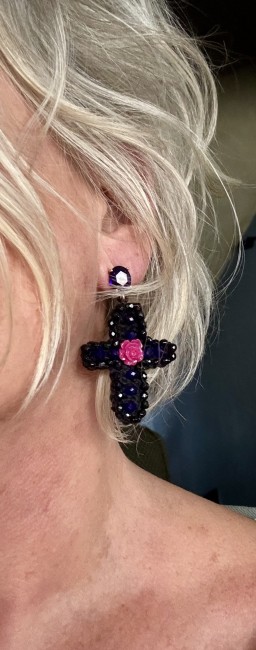đž PINK HALO BOOM — Boucles d’oreilles croisées crochet & camélia fuchsia