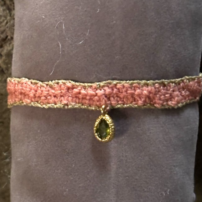 Un bijou comme une balade dans un désert en fleurs : Rose Cactus, c’est la douceur d’un bois de rose chaleureux, brodée de lumière dorée et d’un éclat vert olivine. Une beauté patiente, texturée, un brin mystique — 100 % main, 100 % caractère.