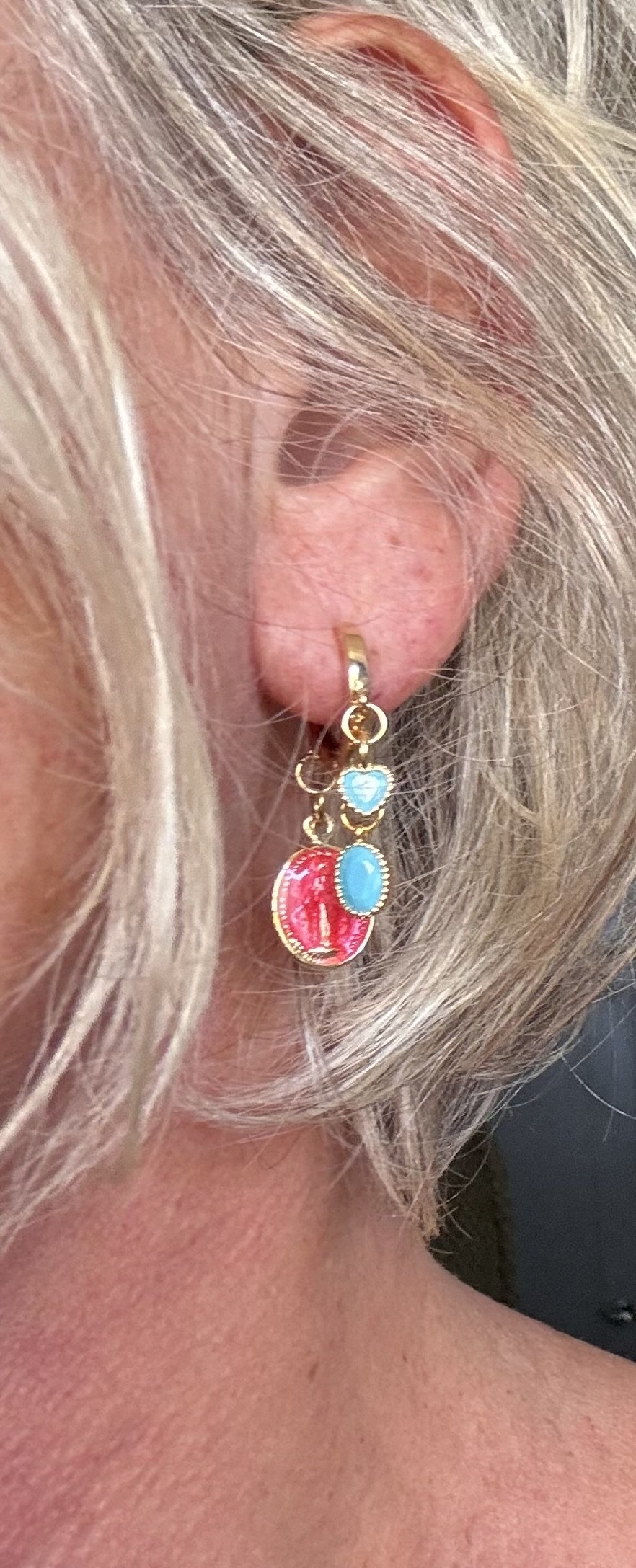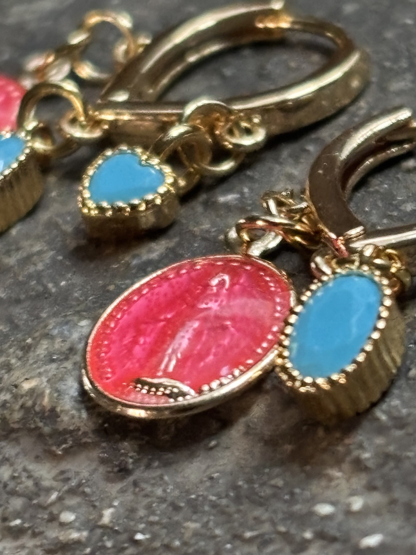 🔸 Un cœur turquoise serti monture plaqué or 18k – clin d’œil au sacré et à l’amour.