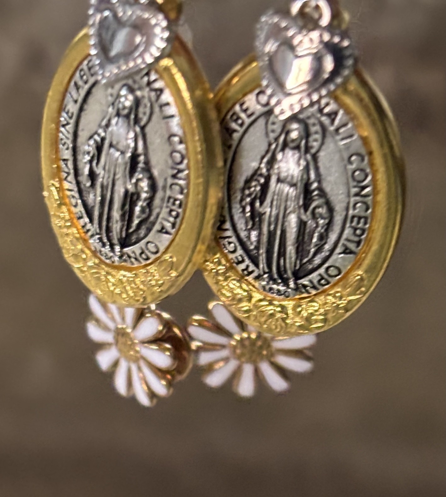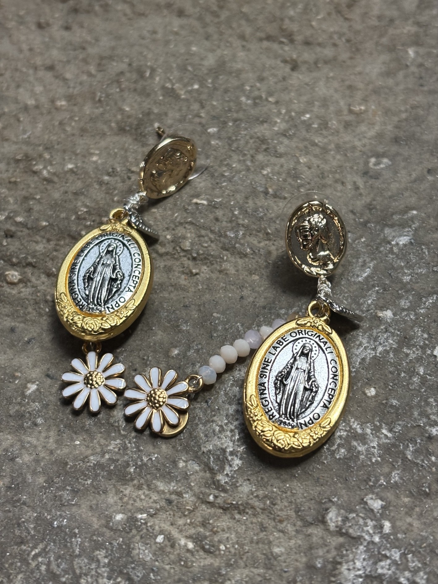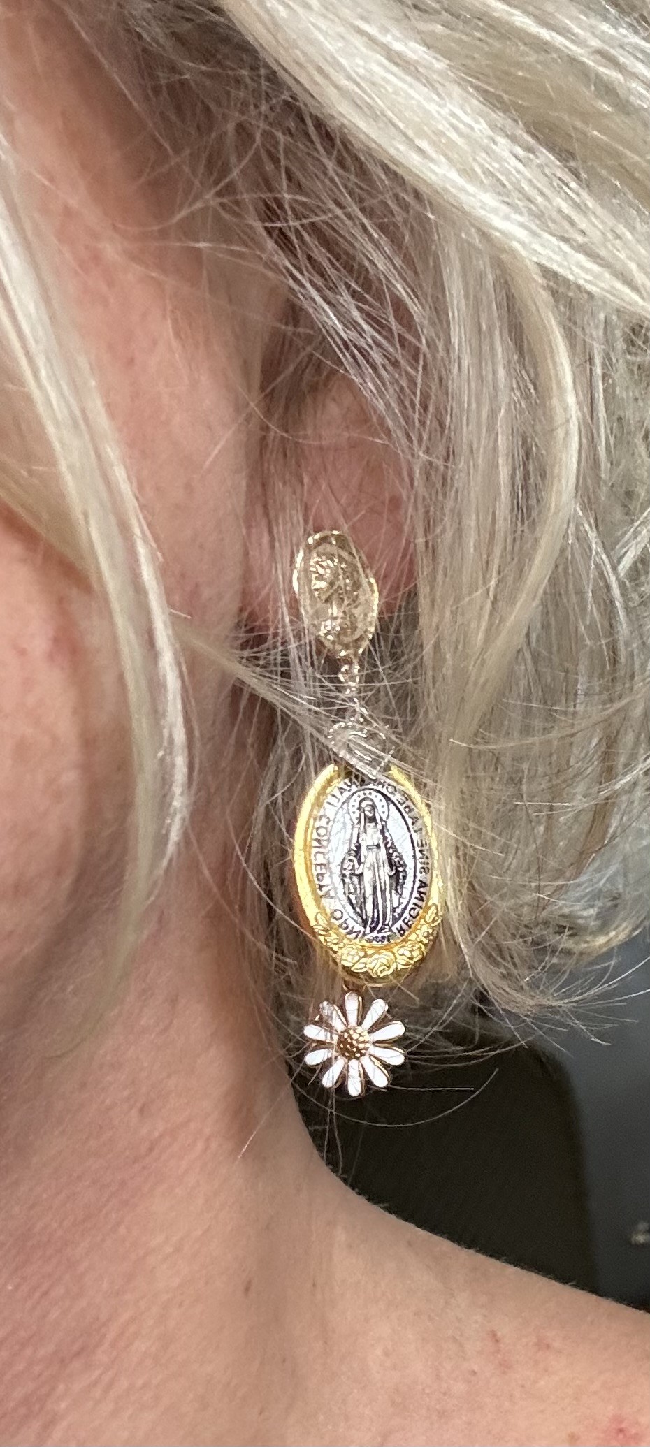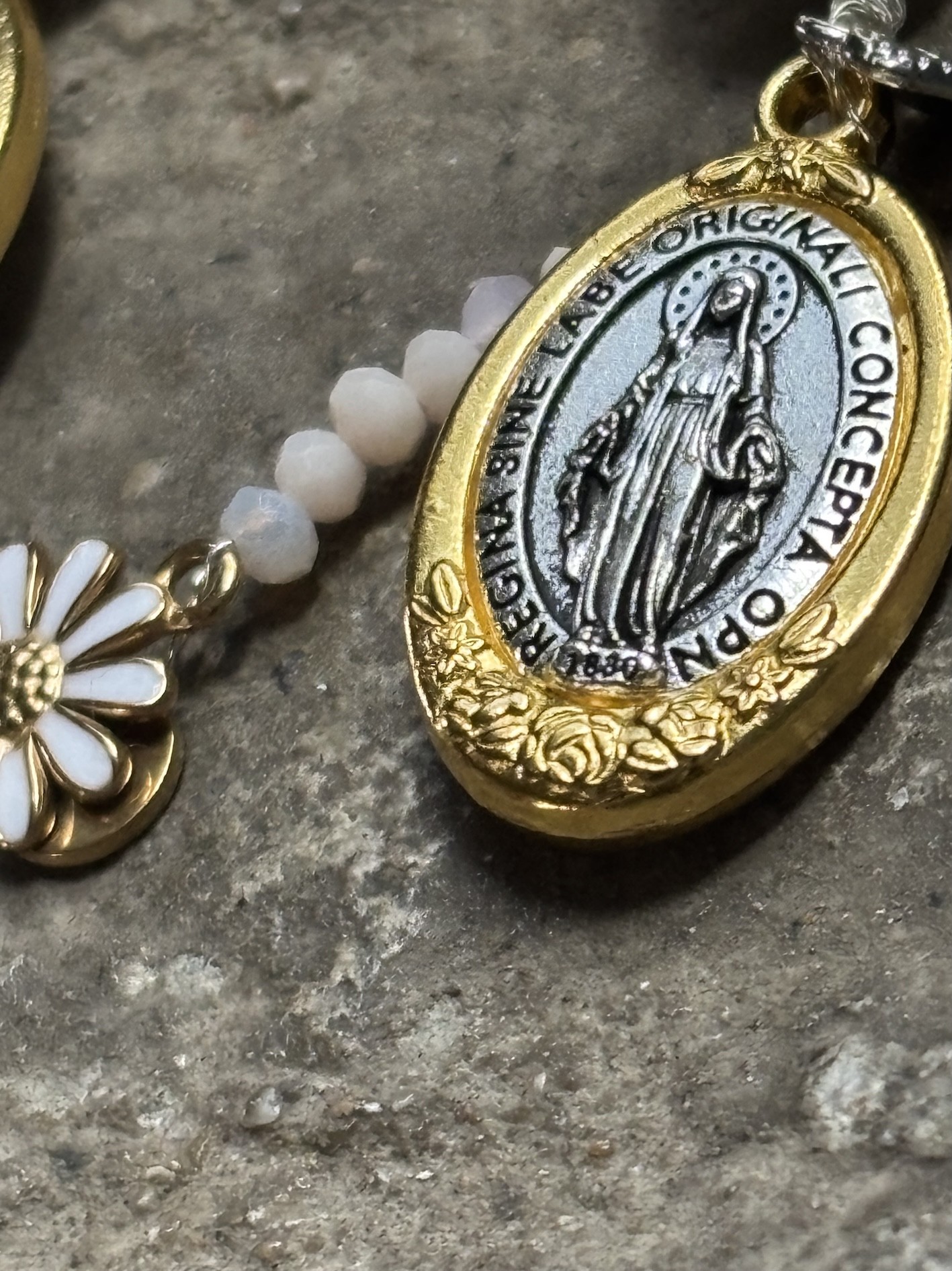 • Médaille Madone mix or & silver en acier inoxydable
