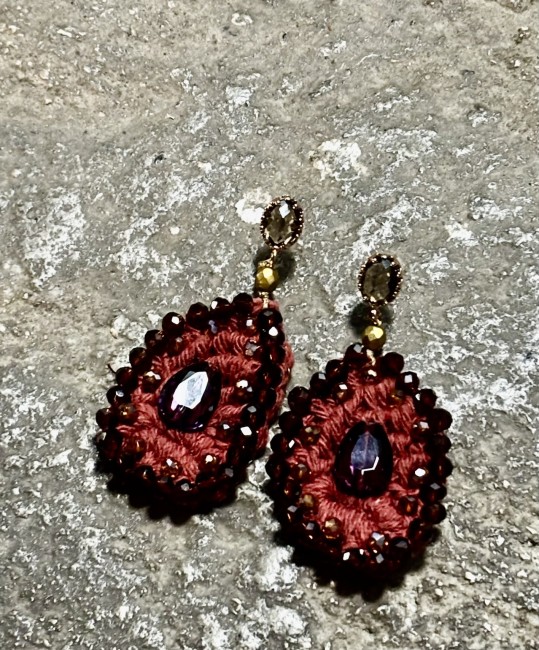 BOUCLES D'OREILLES "Ex Votos "( perles tchèques terracotta/cerise)