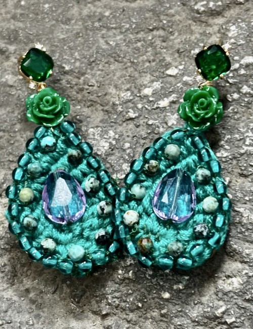 BOUCLES D'OREILLES "Ex Votos "( perles tchèques indigo)
